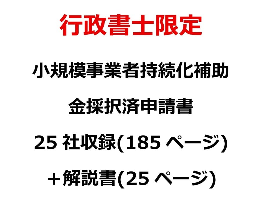 行政書士限定 小規模事業者持続化補助金採択済申請書25社収録(185ページ)+解説書(25ページ)